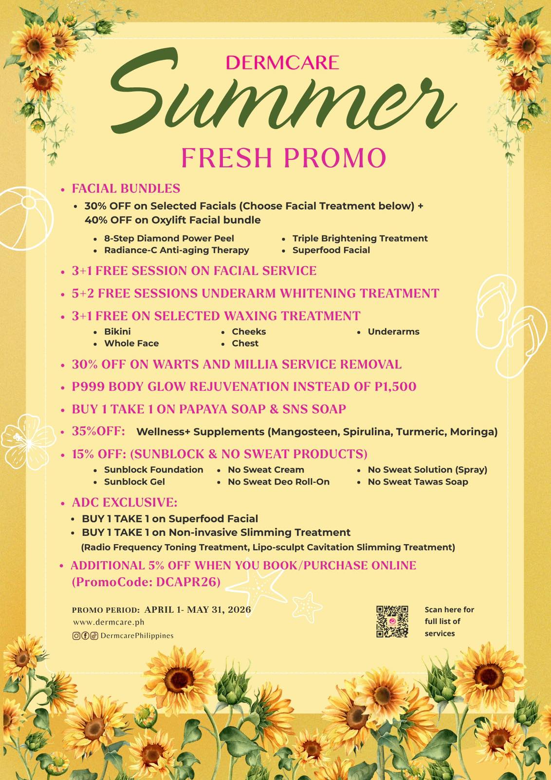 Achieve fairer and smoother underarms with Dermcare Intensive Whitening Treatment for only P600 per session or 4+1 sessions for only P2400.
